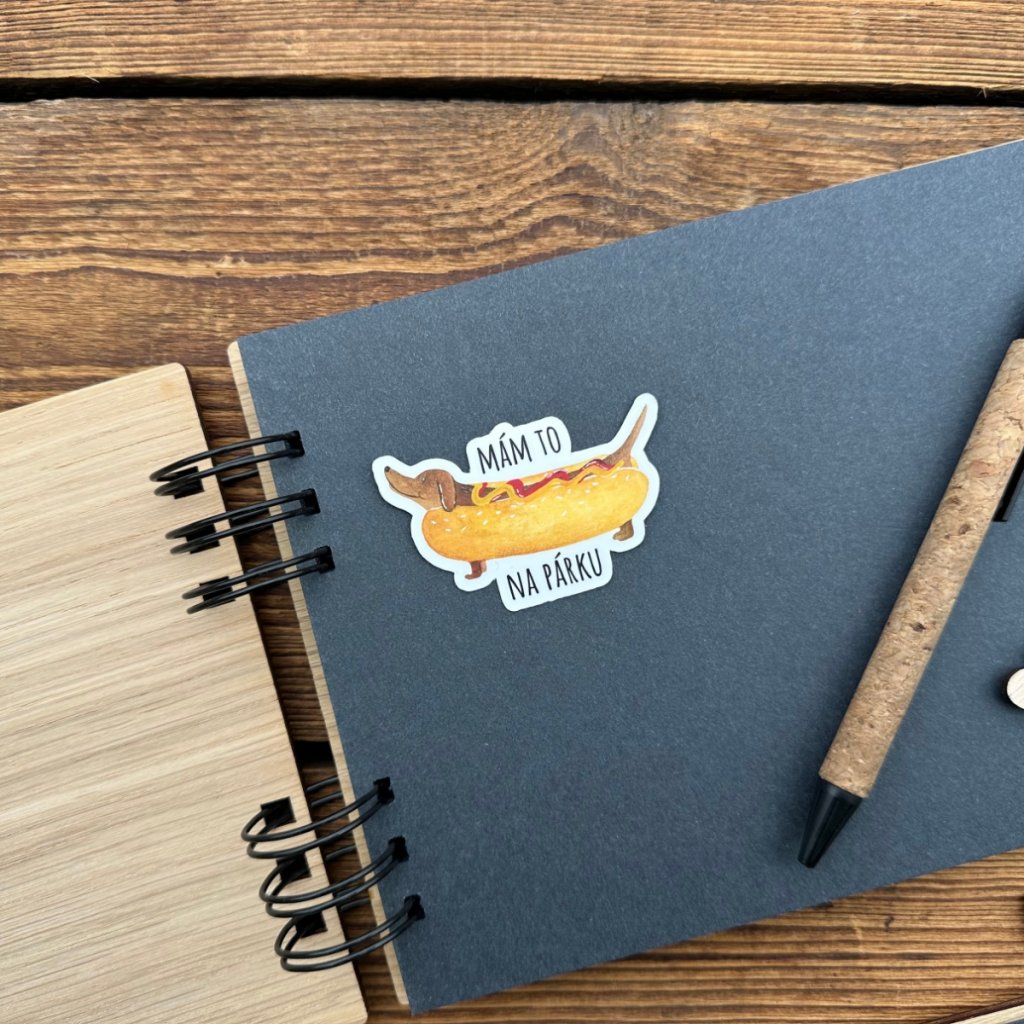 Samolepka s autorskou ilustrací roztomilého jezevčíka v hot dogu – ideální pro všechny, kteří to prostě „mají na párku“. :-) Vyrobena je z pevného PVC a chráněná matnou laminací, která zajišťuje vysokou odolnost vůči vodě, vlhkosti, slunečnímu záření, počasí i běžnému opotřebení.